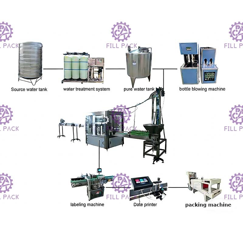 1. PET 3 in 1 冲洗填充 盖盖 기계는 폴리에스테르 병에 포장 된 미네랄 순수 물의 비 소다 음료 생산에 사용됩니다. 세탁, 채우기 및 盖盖는 하나의 기계에 통합됩니다.
